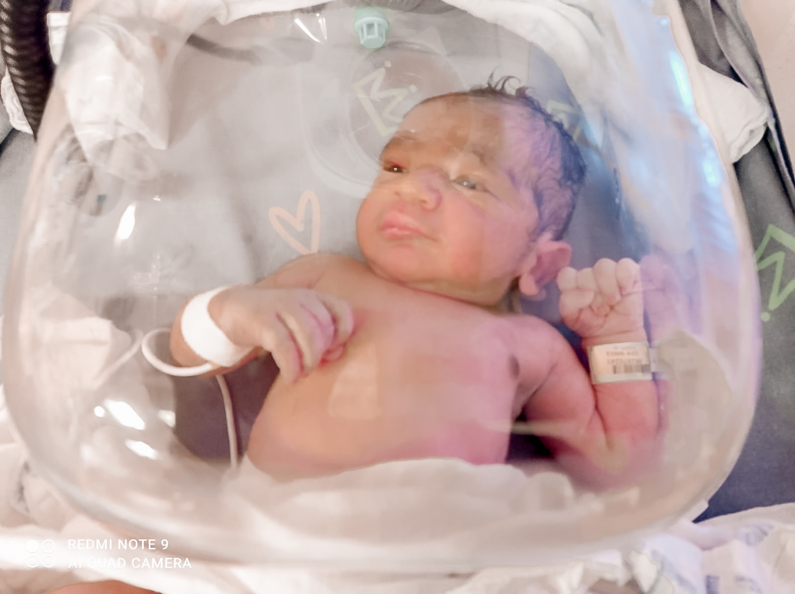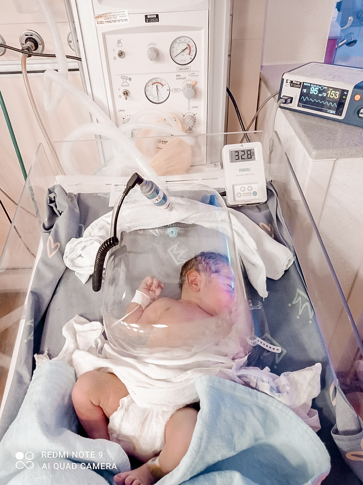 כשראיתי שלפחות הוא נושם ולא עם צינורות מחוברים אליו ממש זה ממש הרגיע אותי – פשוט היה צריך יותר חמצן בסביבה שלו. הרופא עידכן אותנו שברגע שהסטורציה מתייצבת ניתן יהיה להוציא את ה hood ובמידה ומחמיר או לא מתייצב מעבירים אותו לפגיה ויעדכנו אותנו בהמשך.